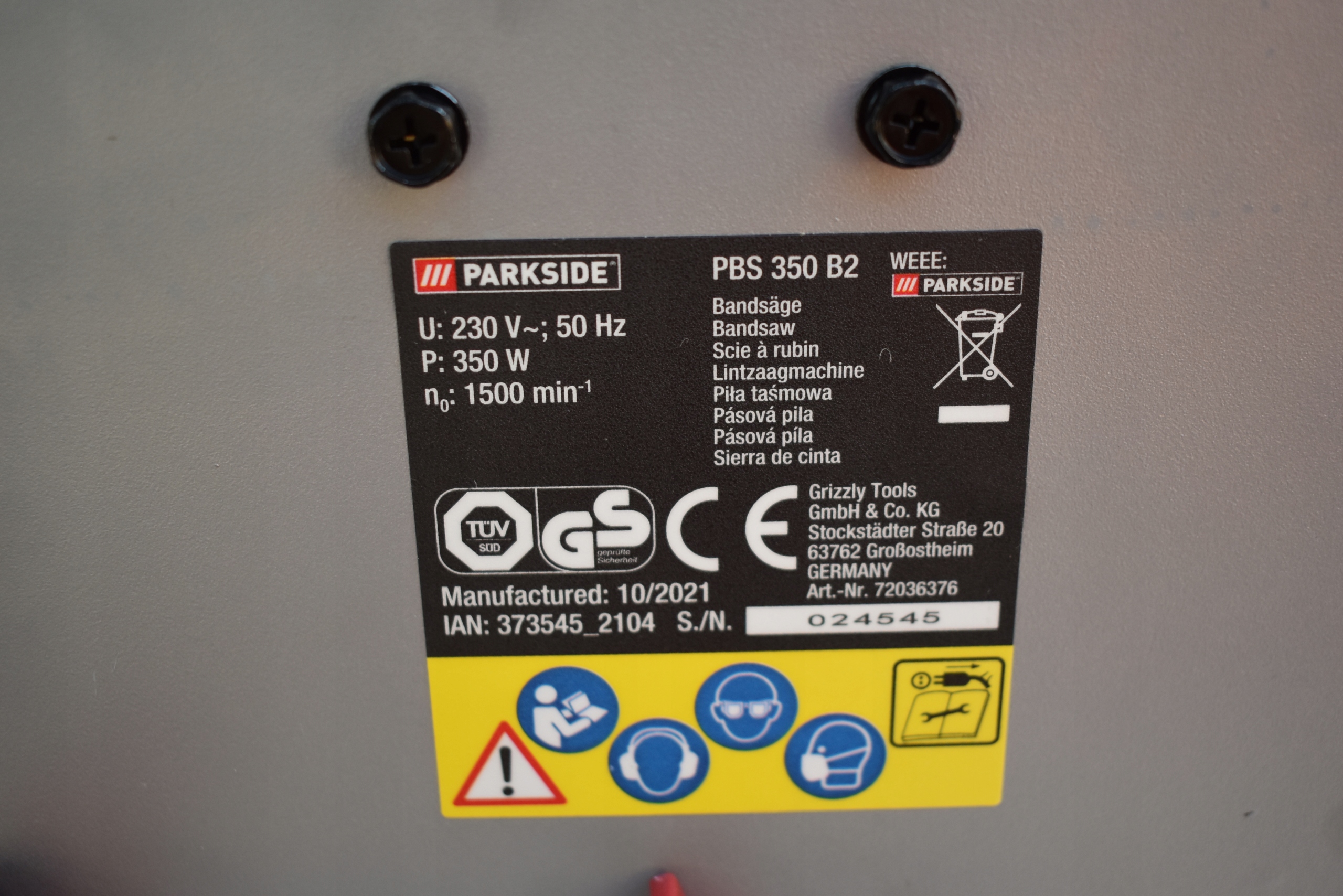 Стрічкова пила Parkside 350 Вт Європейський номер артикулу EAN 4055334599146